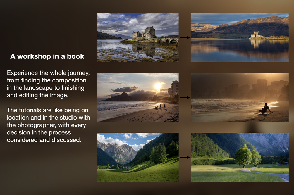 For several years, I have created free tutorials for each image on my instagram page, showing how I found and evolved the composition in the landscape, captured it with the camera, and edited the raw frame into a complete photograph. This book takes that idea and expands it for a full discussion of landscape photography, using twenty images chosen to show a wide range of composition and editing techniques and how they are used in practice.